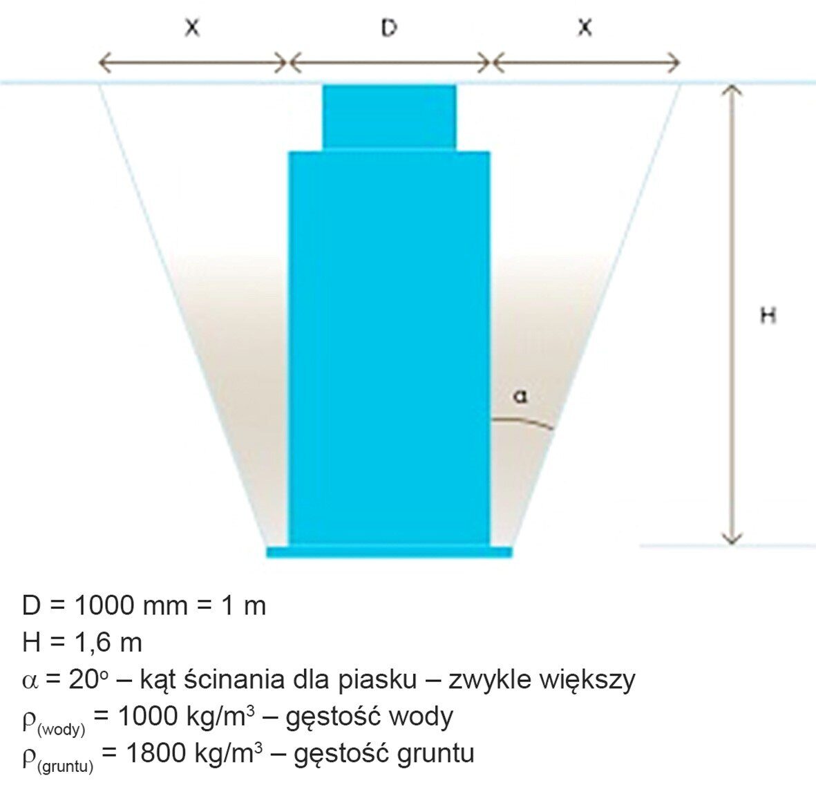 Obliczenia sił wyporu i ciężaru gruntu utrzymującego studzienkę w gruncie: